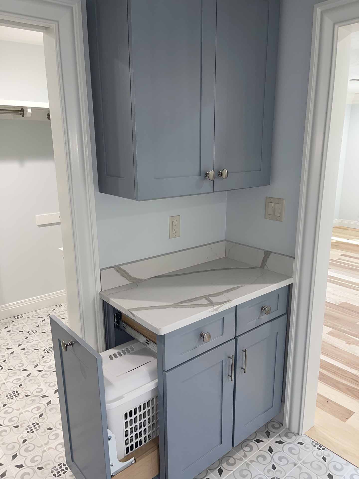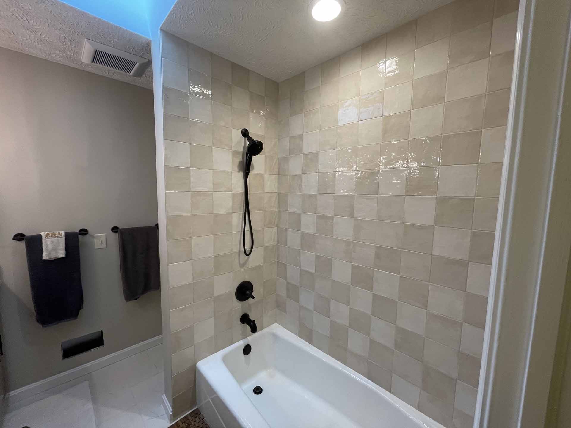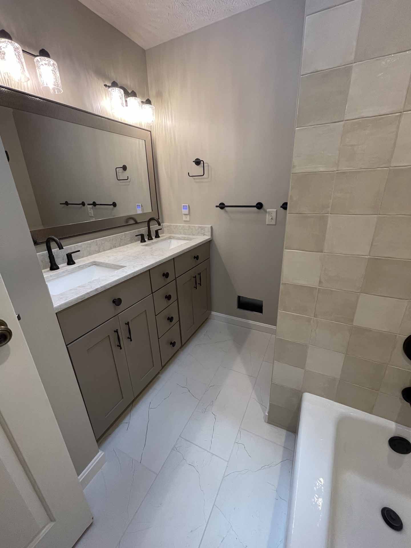 In this total home renovation, no room went untouched. Floors are full of personality, each bathroom features unique finishes, and even the laundry room is a space to enjoy. Lovely ceilings and exposed beams add character and charm in Floyds Knobs, Indiana.
