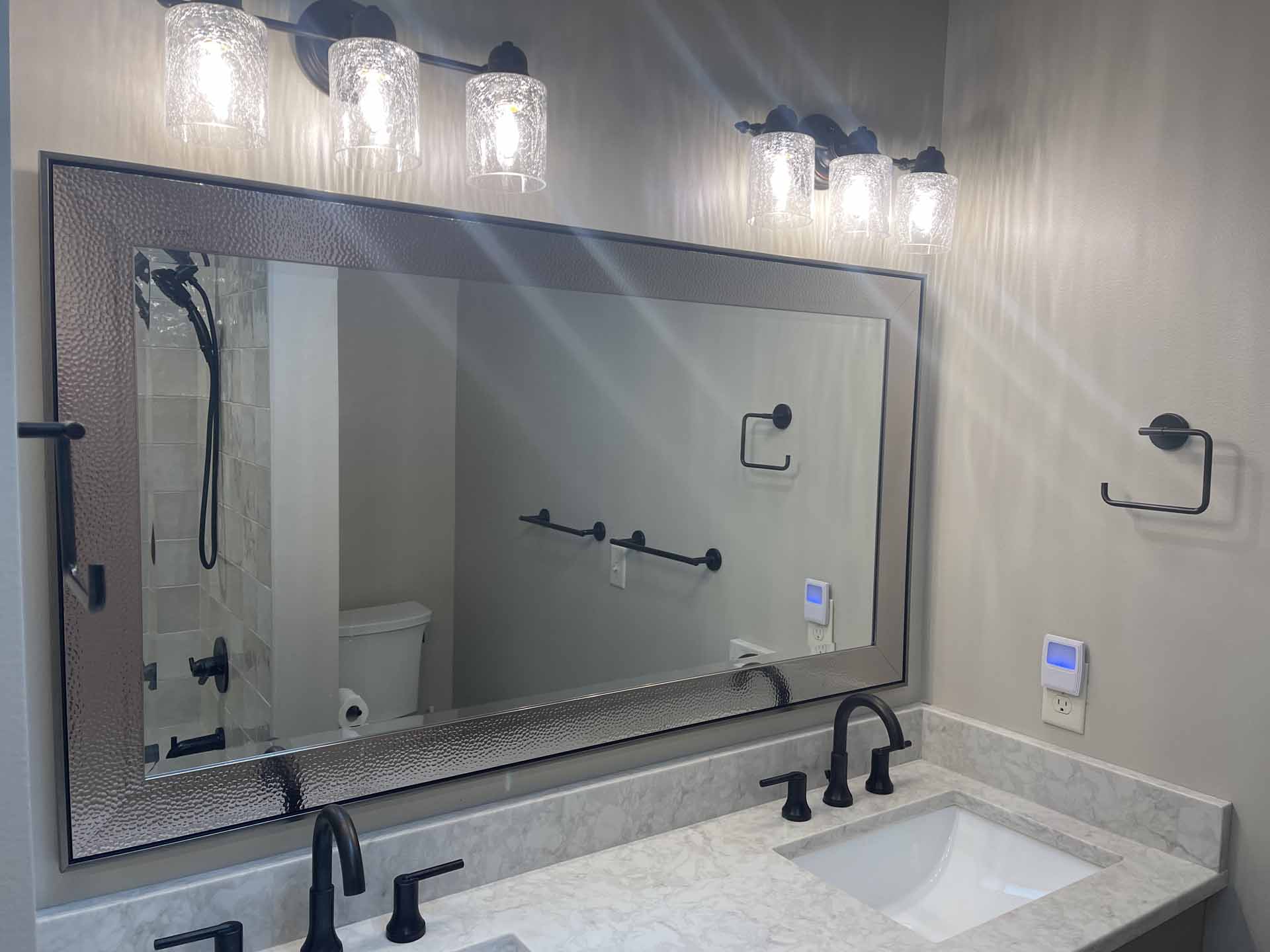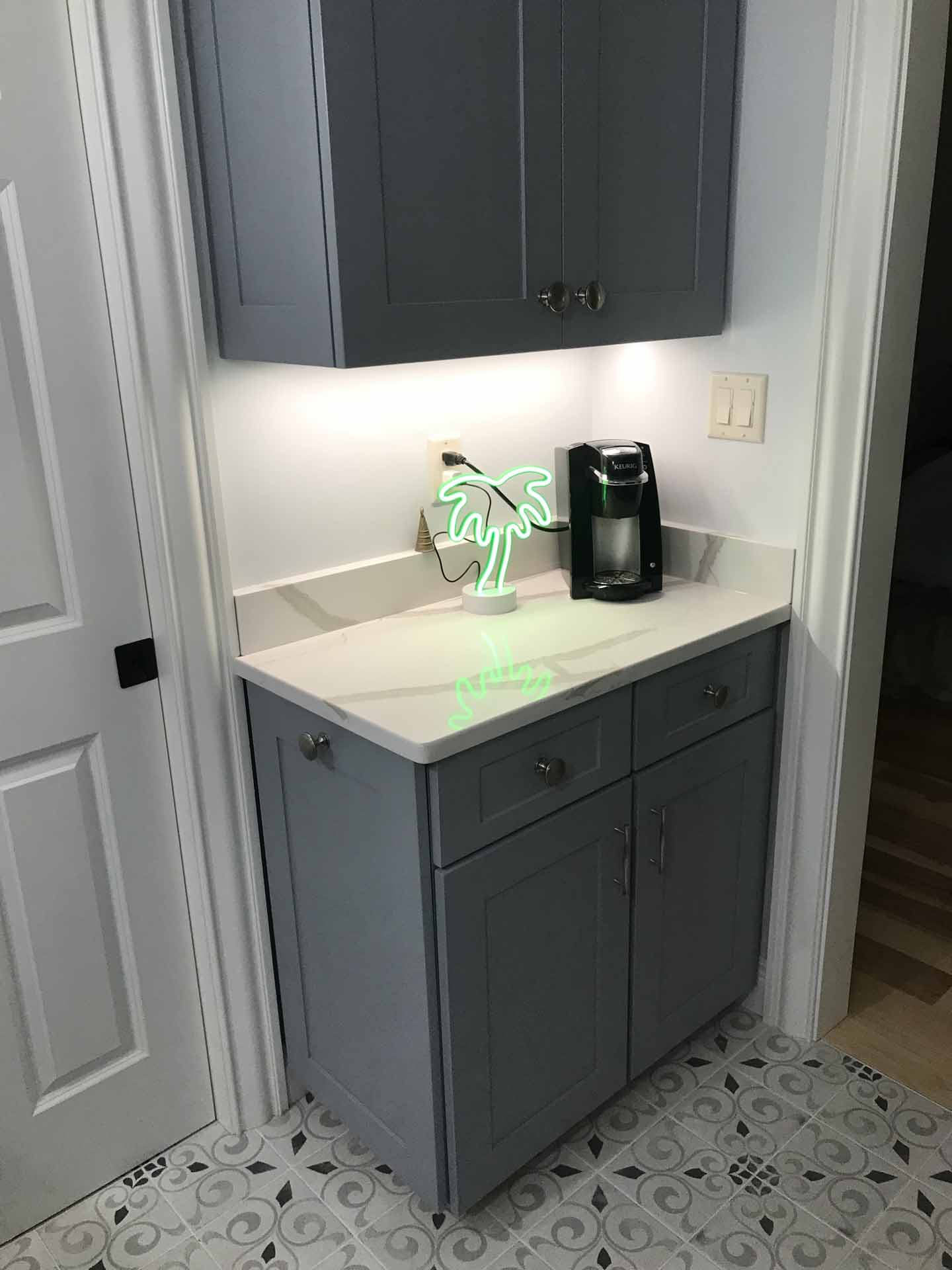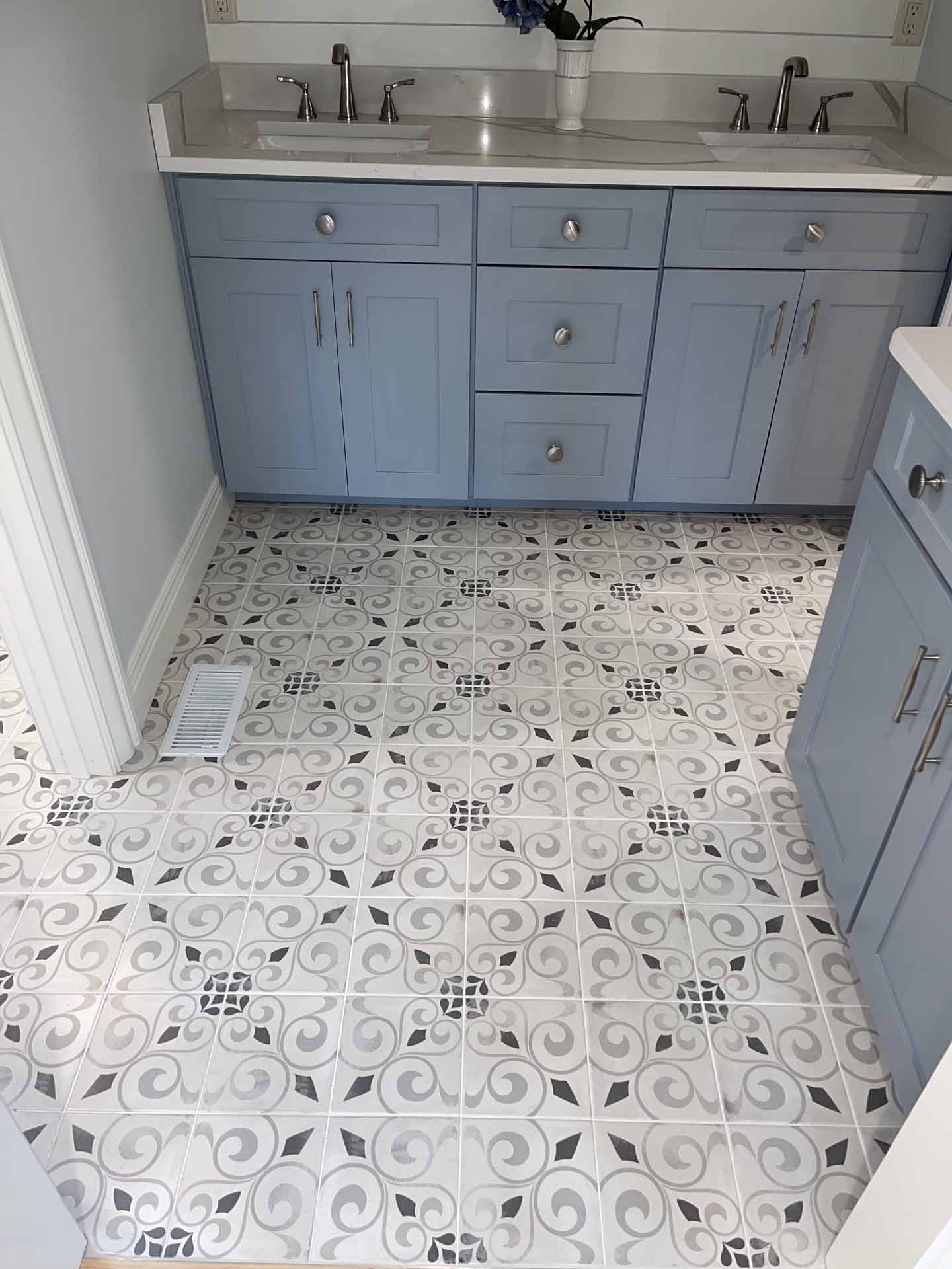 In this total home renovation, no room went untouched. Floors are full of personality, each bathroom features unique finishes, and even the laundry room is a space to enjoy. Lovely ceilings and exposed beams add character and charm in Floyds Knobs, Indiana.