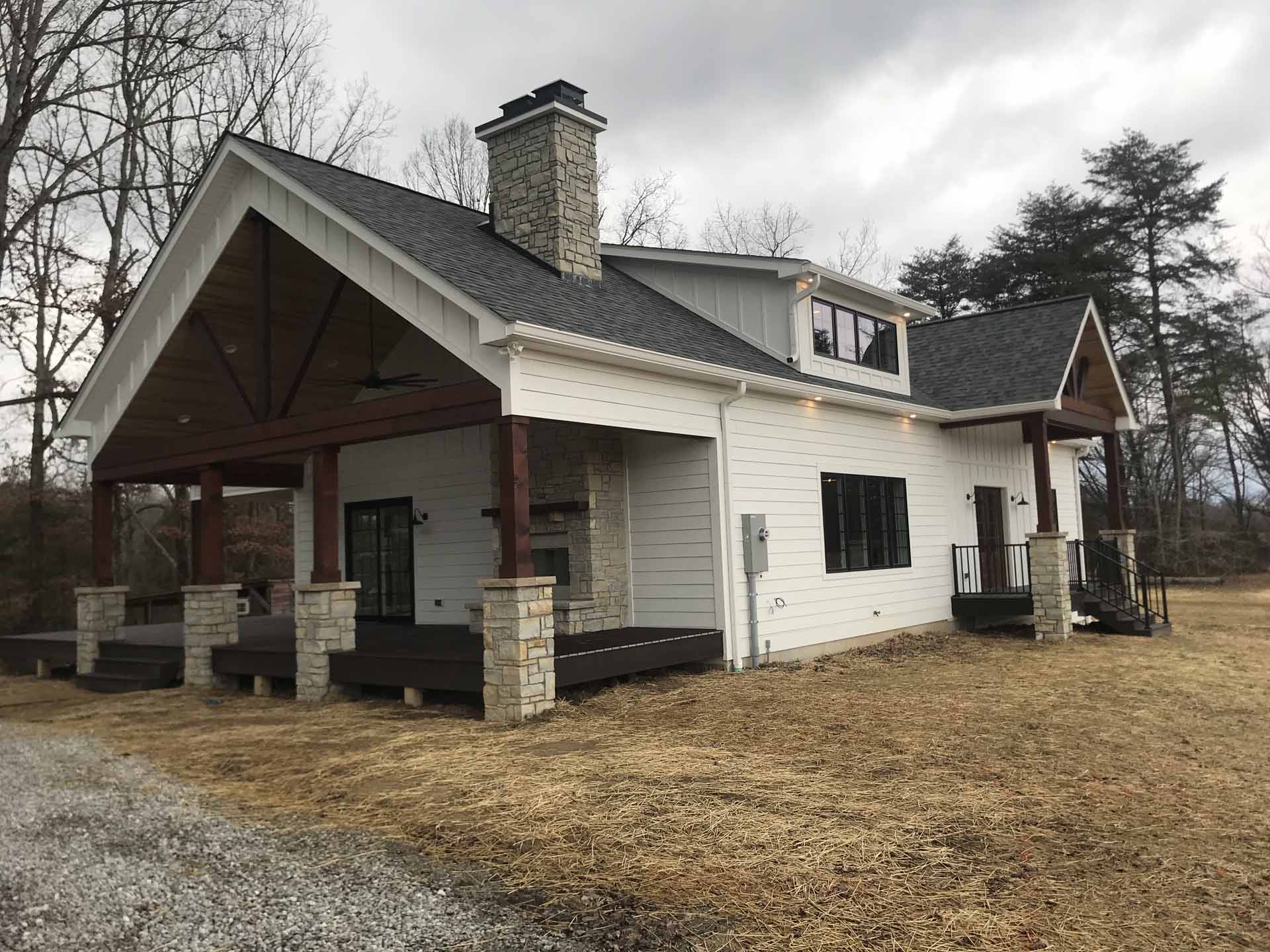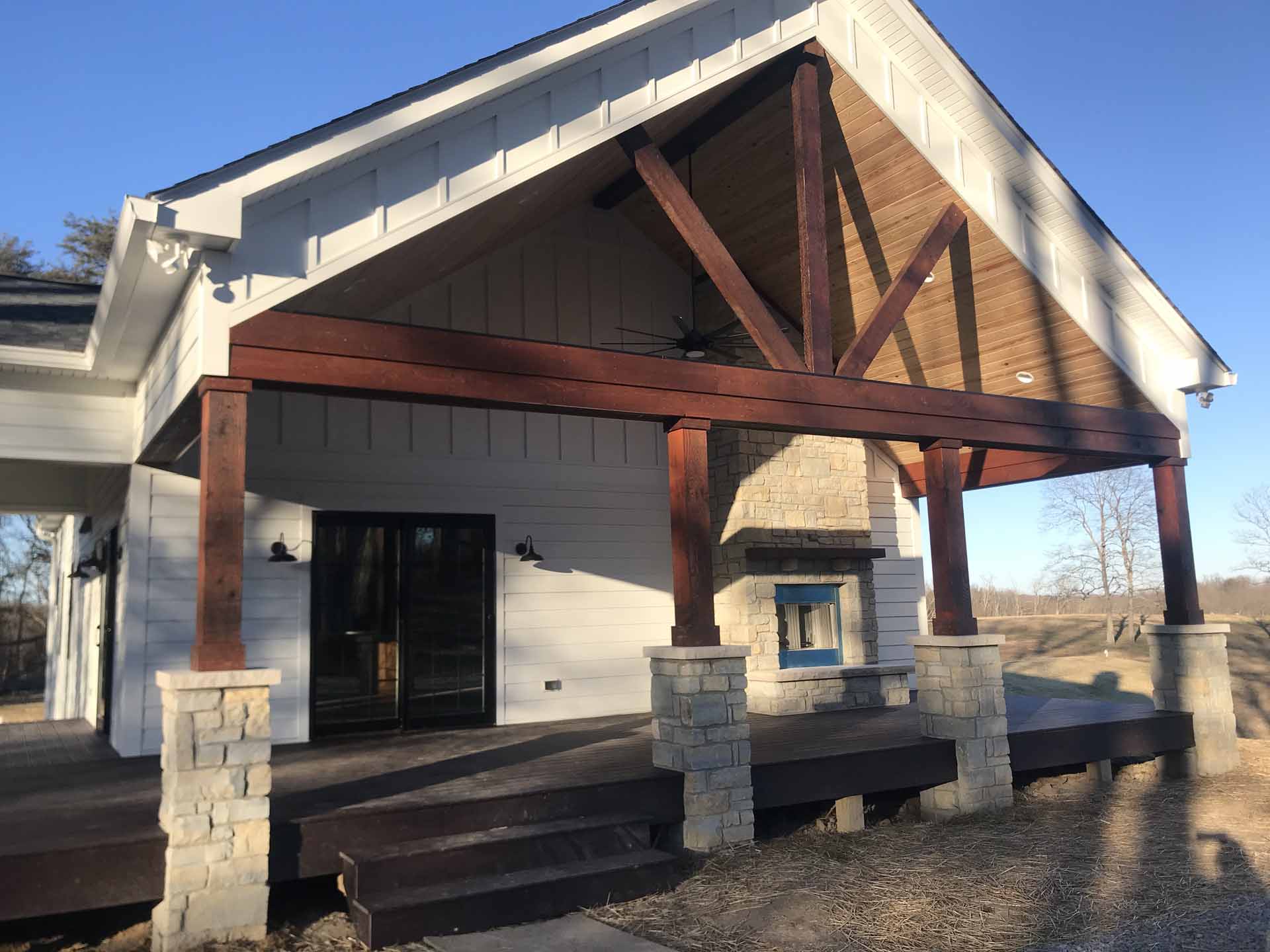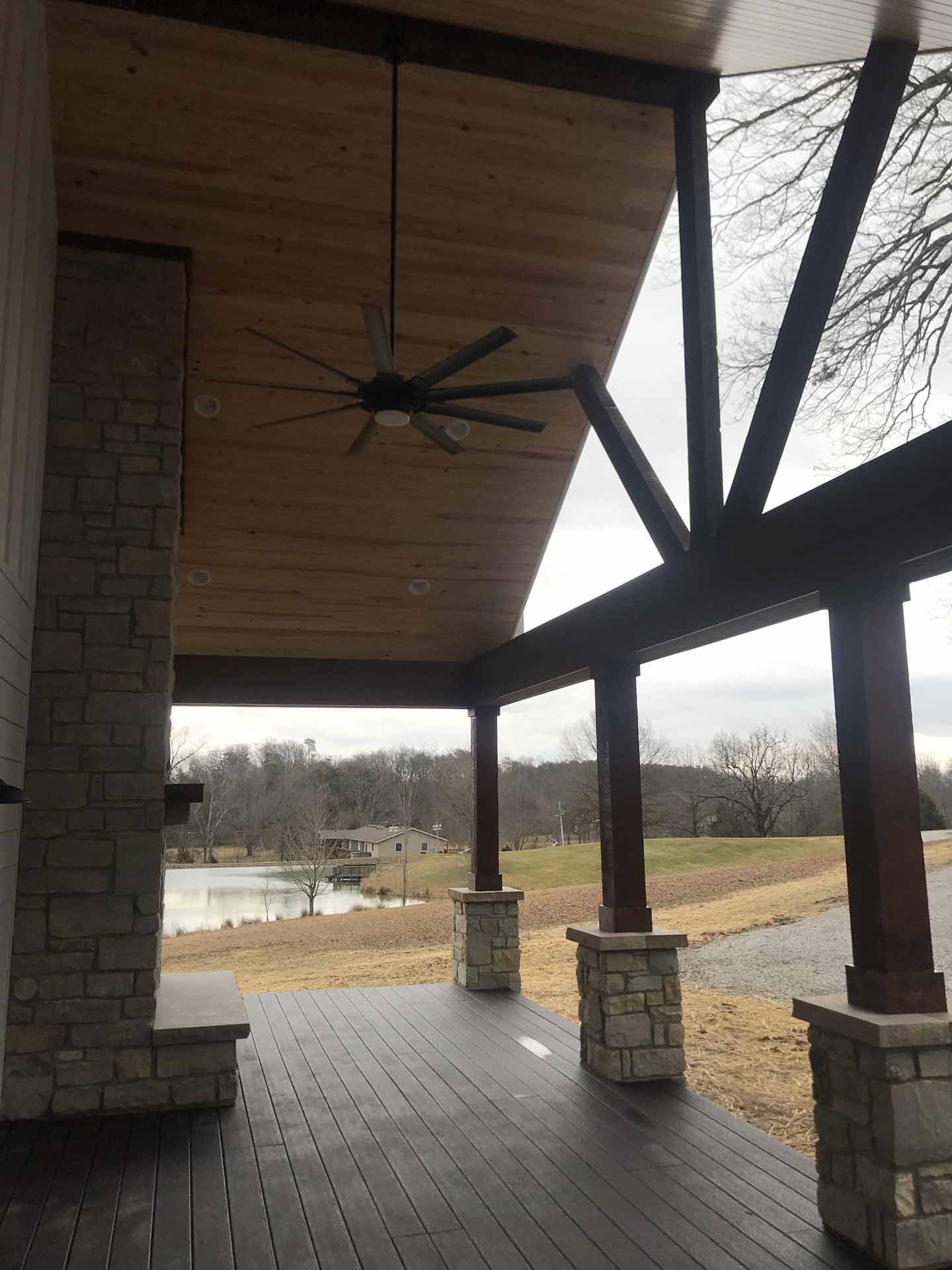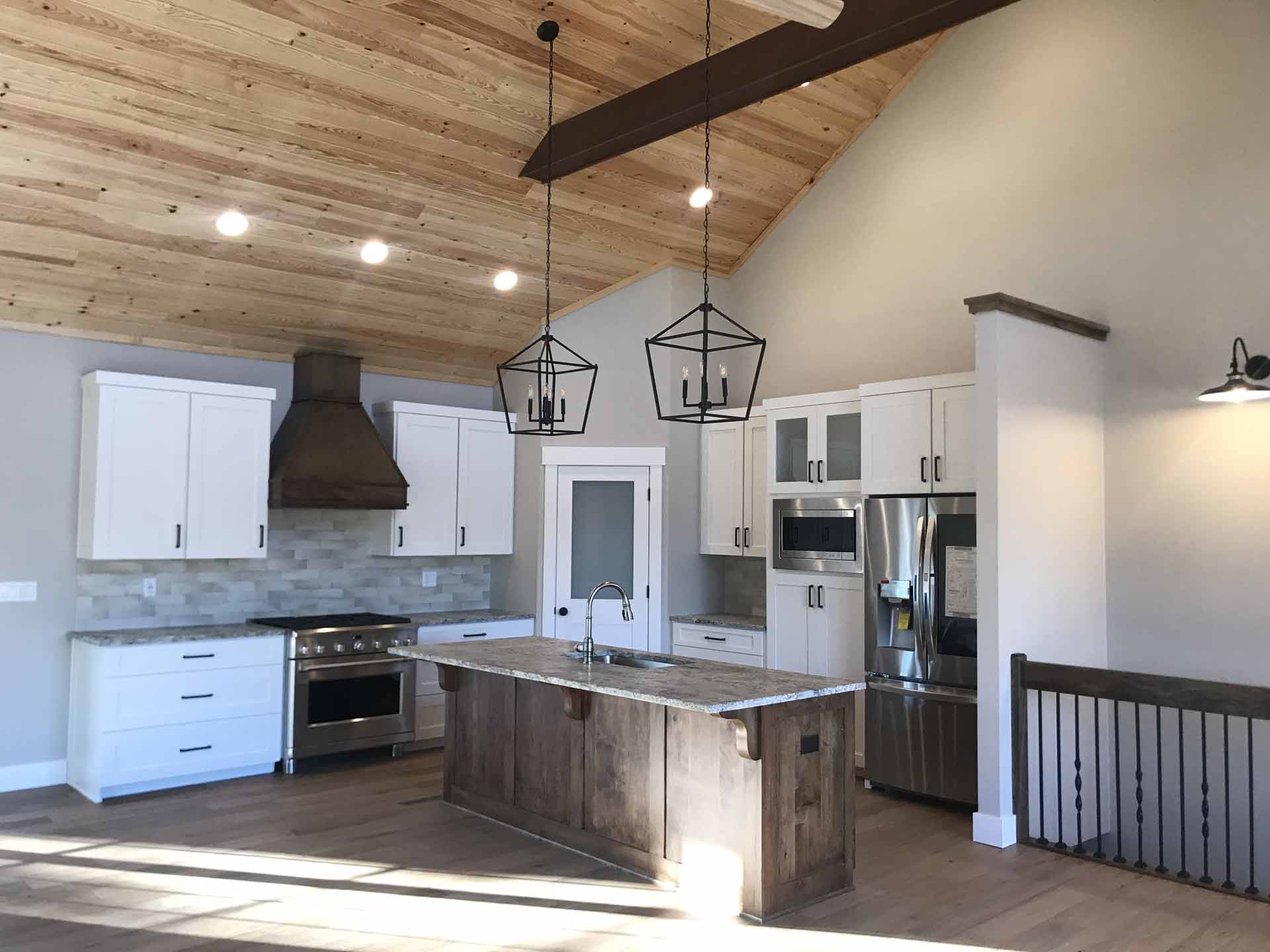 This custom home in Sellersburg, Indiana blends timeless craftsmanship with easy country living, featuring reclaimed wood accents, striking cedar beams, and a look-through fireplace that connects the living spaces. A spacious kitchen flows seamlessly into the great room, all framed by gorgeous views and complemented by exquisite exterior finishes that complete the home’s natural charm.