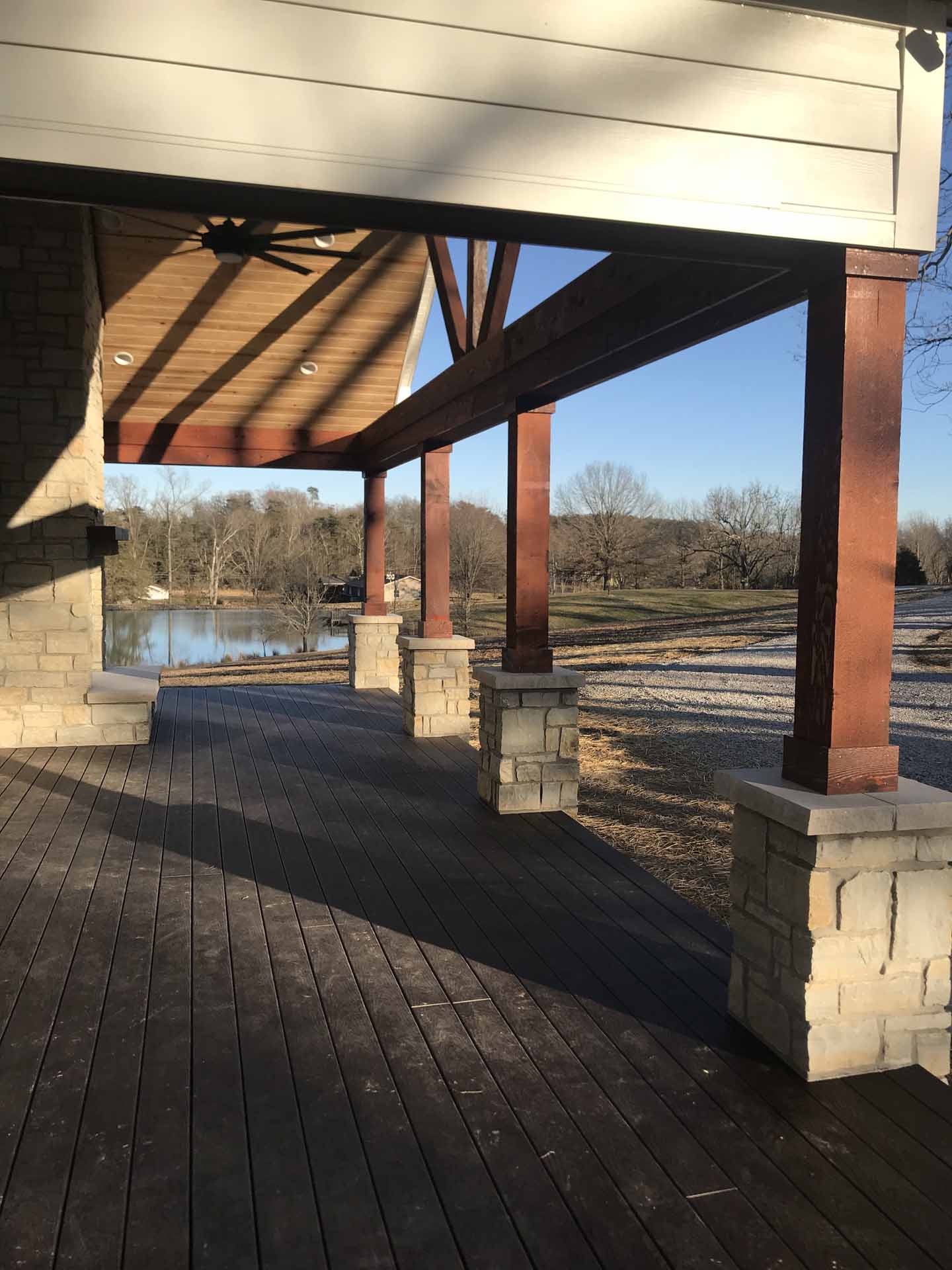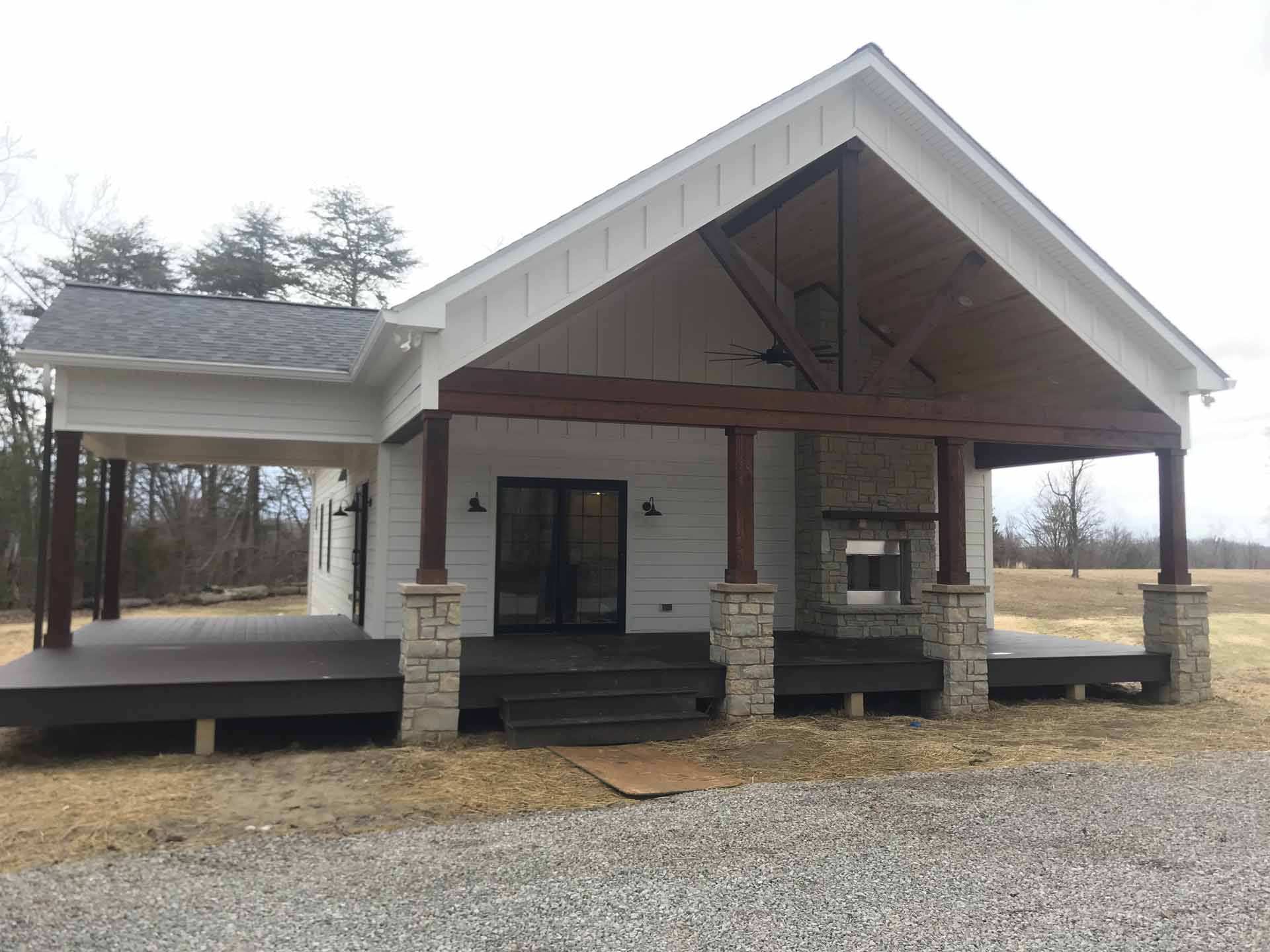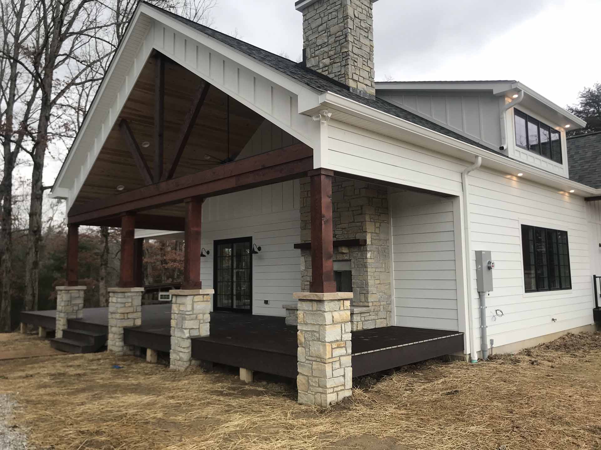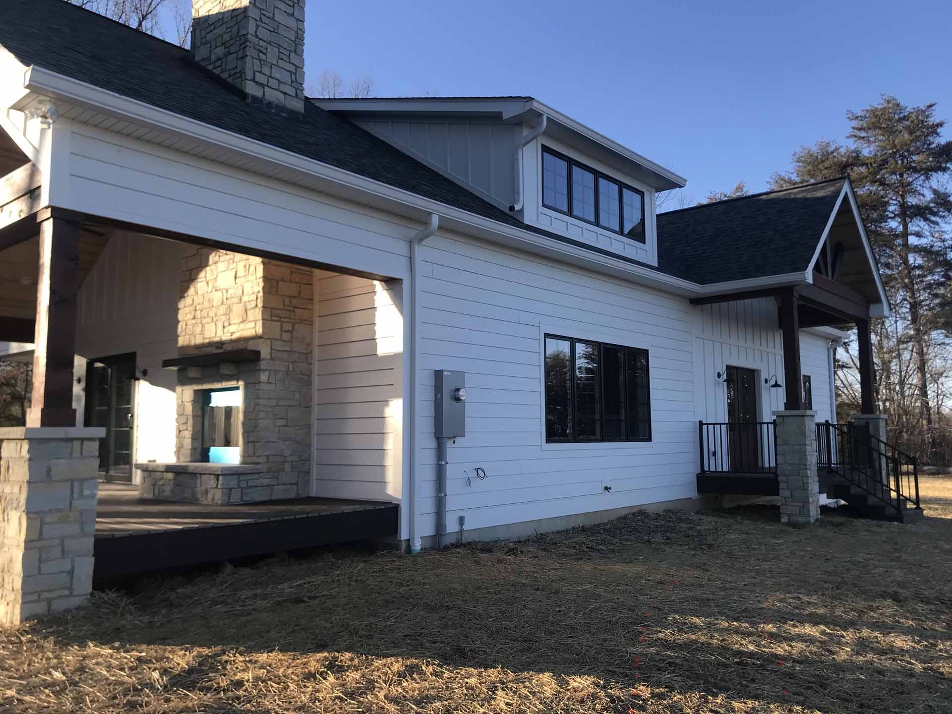 This custom home in Sellersburg, Indiana blends timeless craftsmanship with easy country living, featuring reclaimed wood accents, striking cedar beams, and a look-through fireplace that connects the living spaces. A spacious kitchen flows seamlessly into the great room, all framed by gorgeous views and complemented by exquisite exterior finishes that complete the home’s natural charm.