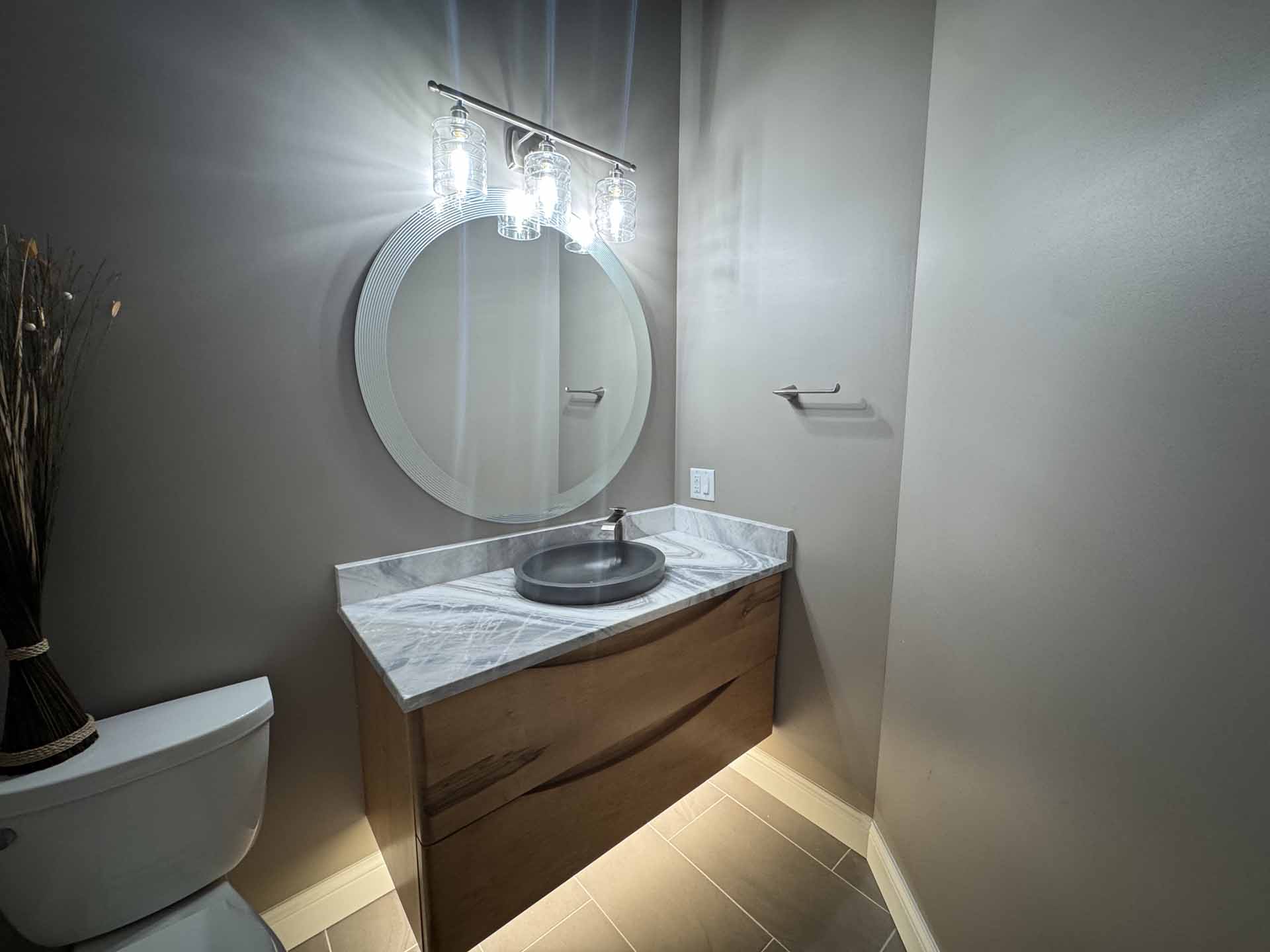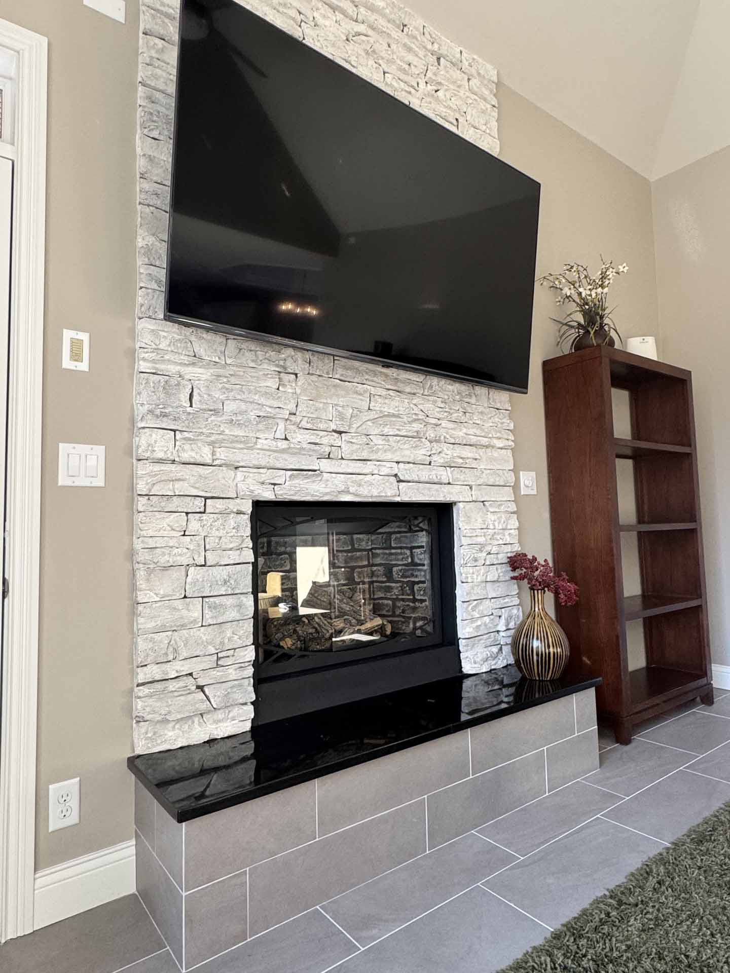 This renovated home balances modern design with everyday functionality. Highlights include a sleek floating bathroom vanity, two cozy fireplaces, a laundry room with all the bells and whistles, and ceilings that draw the eye upward, adding drama and elegance throughout.